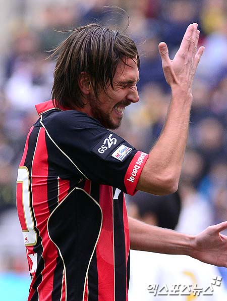 [엑스포츠뉴스 = 상암, 김성진 기자] 25일 오후 서울 마포구 성산동 서울월드컵경기장에서 열린 ‘2012 K-리그‘ FC서울과 전북 현대의 경기에 데얀이 슈팅 후 자신을 자책하고 있다.