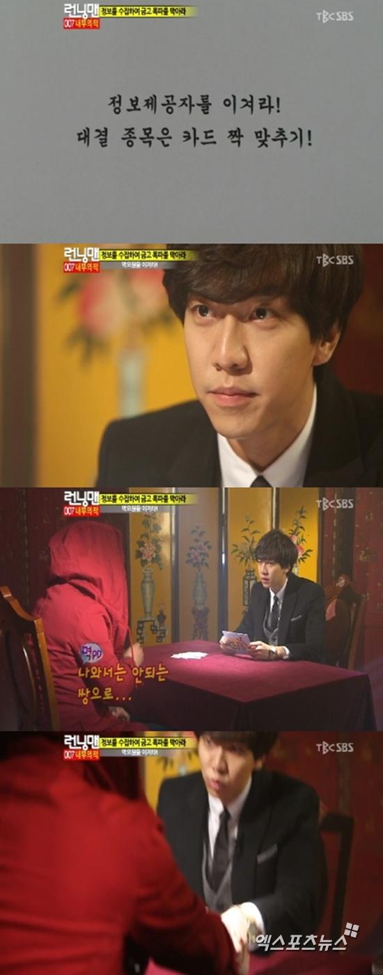 25일 방송된 SBS '일요일이 좋다-런닝맨'에서 이승기는 최정예 첩보 요원으로 코드번호 007을 부여받으며 내부의 적을 아웃시키기 위해 레이스에 나섰다.