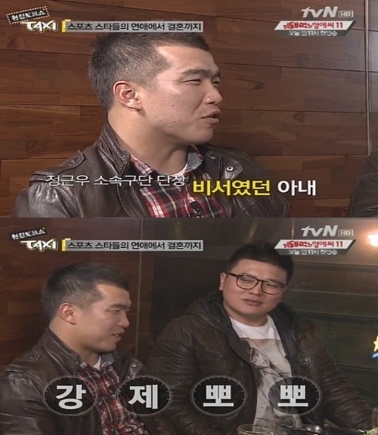 정근우는 "계속된 구애에도 아내가 받아주지 않았고, 안타 두 번을 치면 뽀뽀를 해주기로 약속했다"며 "하지만 안타를 쳤음에도 뽀뽀해주지 않자 내가 강제뽀뽀를 해버렸다"고 고백했다.