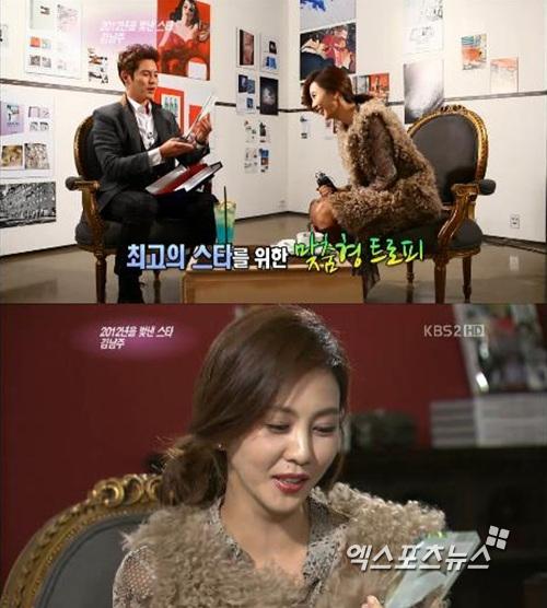 이날 제작진은 2012년을 빛낸 스타로 선정된 김남주를 위해 자체 제작한 맞춤형 트로피를 준비했다.