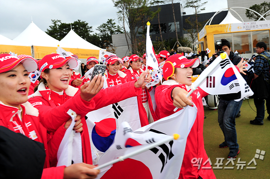 [엑스포츠뉴스=부산기장, 권혁재 기자] 2일 오전 부산 기장군 베이사이드 골프클럽(6,345야드/파72)에서 'KB금융컵 제11회 한-일 여자프로골프 국가대항전' 2라운드 싱글 스트로크 매치플레이서 5승 3무 4패를 기록하며 승점 13점을 획득한 한국은 전날 치뤄진 1라운드 포섬+포볼 스트로크 경기서 승점 10점을 더해 최종합계 23-13점으로 우승을 차지하였다.