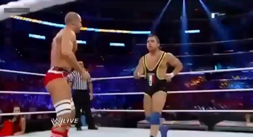 영상 속에는 두 명의 레슬러가 경기를 하는 모습이 담겨 있다.