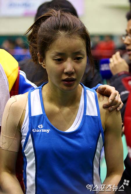 [엑스포츠뉴스 = 울산, 김성진 기자] 7일 오후 울산 울주군 울산경영정보고 체육관에서 열린 ‘제66회 전국아마추어복싱선수권대회 겸 2013년도 국가대표 1차 선발전’ 48kg급에 출전한 배우 이시영(30, 잠실복싱)이 이소연(전북체육회)와의 경기에서 판정승을 거둔 후 퇴장하고 있다.