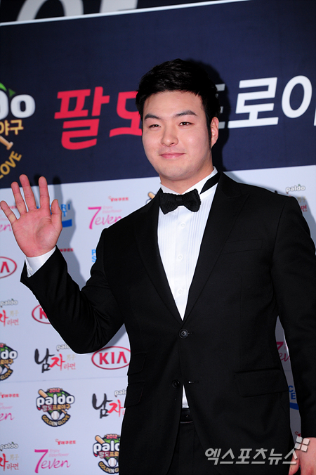 [엑스포츠뉴스=코엑스, 권혁재 기자] 11일 오후 삼성동 코엑스 컨벤션센터 3층 오디토리움에서 열린 '2012 팔도 프로야구 골든 글러브' 시상식에서 넥센 히어로즈 박병호가 포토월에서 포즈를 취하고 있다.