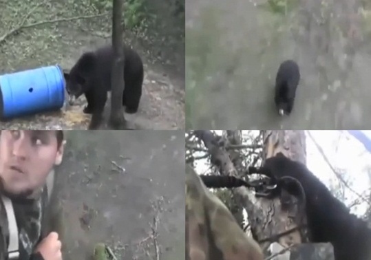 하지만 곰이 사라진 지 몇 초 만에 나무를 타고 남자 뒤에 다가와 있어 보는 이들의 놀라움을 자아낸다.