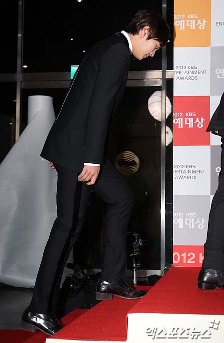 [엑스포츠뉴스 = 김성진 기자] 22일 오후 서울 영등포구 여의도동 여의도 KBS홀에서 열린 ‘2012 KBS 연예대상’에 주원이 입장하고 있다.