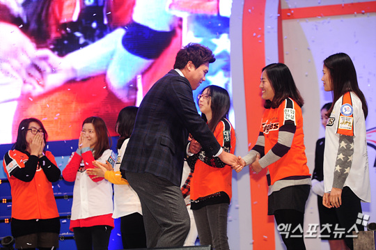 [엑스포츠뉴스=대전, 사진부 권혁재 기자] 5일 오후 대전 한밭 종합운동장 내 한밭체육관에서 열린 '류현진 MLB 진출 기념 환송회'에서 류현진이 모든 프로그램을 마치고 팬클럽 회원들과 악수를 나누고 있다.
