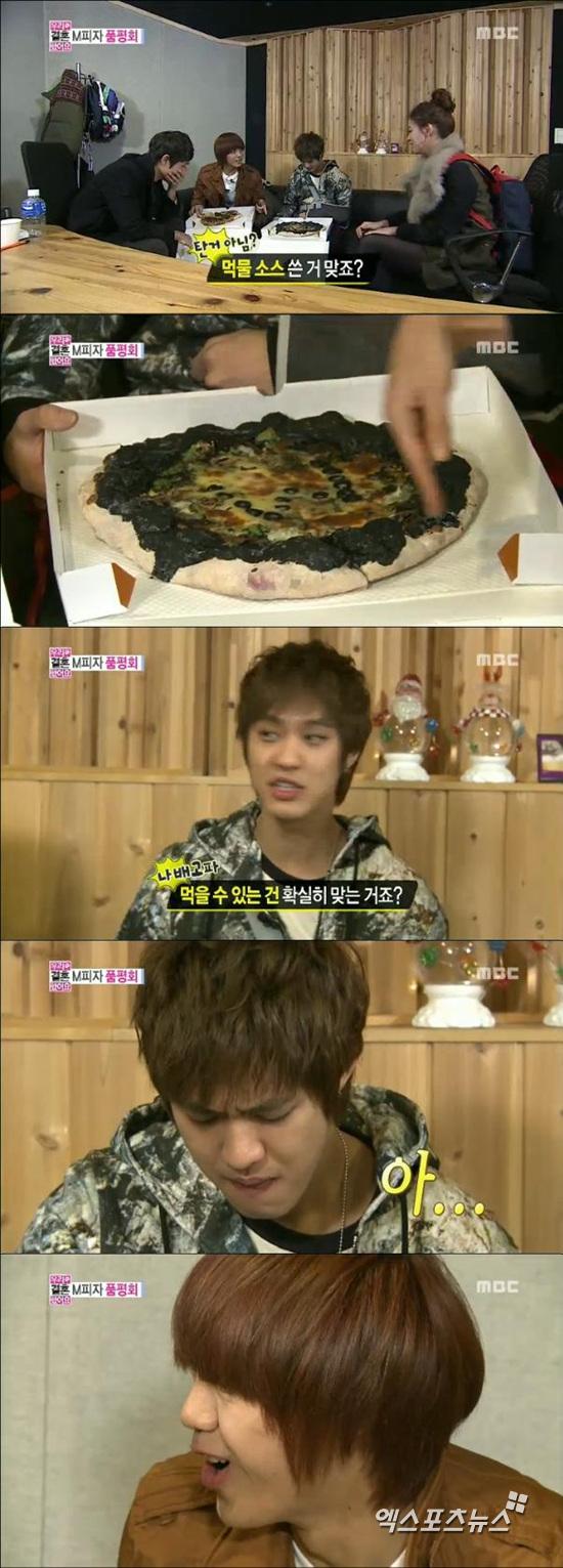 특히 승호는 "먹을 수 있는 건 확실히 맞는 거죠?"라며 선뜻 피자 먹기를 꺼리다가 한입 먹어보고는 말을 잇지 못했다. 미르 역시 엠블랙 피자의 요상한 맛에 몸서리를 쳤다.