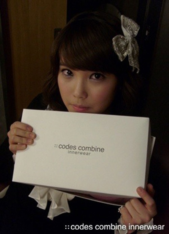 사진 속 아이유는 협찬받은 속옷 상자를 들고 카메라를 바라보고 있다. 속옷 협찬이 약간은 부끄러운지 눈만 크게 떴을 뿐 무표정한 모습이다.