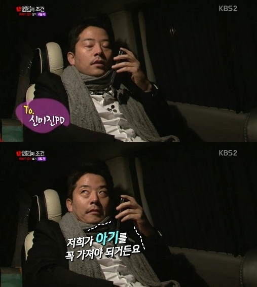 16일 방송된 KBS2 '인간의 조건'에서 김준호는 차 안에서 아내에게 전화를 걸며 "큰일 났다. 오늘도 집에 못 들어 간다"고 말문을 열었다.