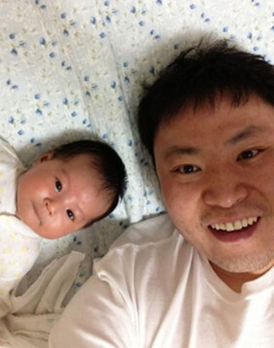사진 속에는 흰 티셔츠를 입은 강풀이 침대에 조심스레 누워 자신의 딸 옆에서 환한 미소를 지어보이고 있다. 그 옆에 있는 그의 딸은 입술을 앙 다문 채 또랑또랑한 눈빛을 하고 있어 보는 이들로 하여금 절로 미소를 짓게 만들고 있다.