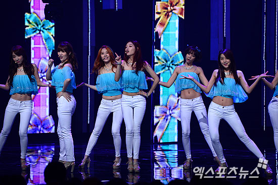 [엑스포츠뉴스 = 권태완 기자] 28일 오후 서울 상암동 CJ E&M에서 열린 Mnet '생방송 엠카운트다운'에 레인보우가 공연을 하고 있다.