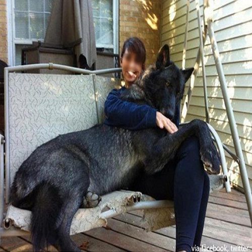 사진 속에는 자신의 주인 품에 안겨 있는 몸집이 큰 개의 모습이 담겨 있다.