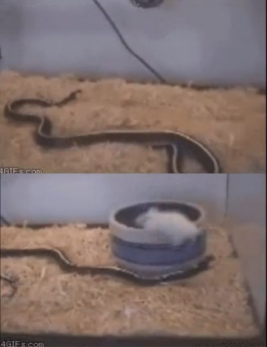 공개한 영상 속에는 뱀이 다가오자 재빨리 도망가는 흰색 쥐의 모습이 담겨 있다. 좁은 공간에서 스르르 다가오는 뱀을 피해 재빠르게 이동하는 쥐의 민첩함이 인상적이다. 마지막에 쥐는 살기 위해 통 속으로 몸을 숨기며 놀라운 회피 능력을 보여준다.