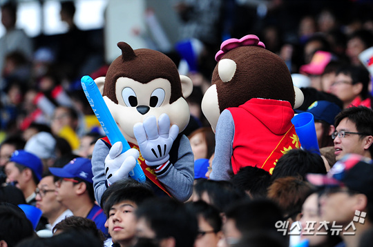 [엑스포츠뉴스=타이중(대만), 권혁재 기자] 3일 오후 대만 타이중 인터콘티넨탈구장에서 열린 2013 월드베이스볼클래식(WBC 2013) 1라운드 대만과 네덜란드의 경기에서 대만 마스코트들이 관중석에서 경기를 관람하고 있다.