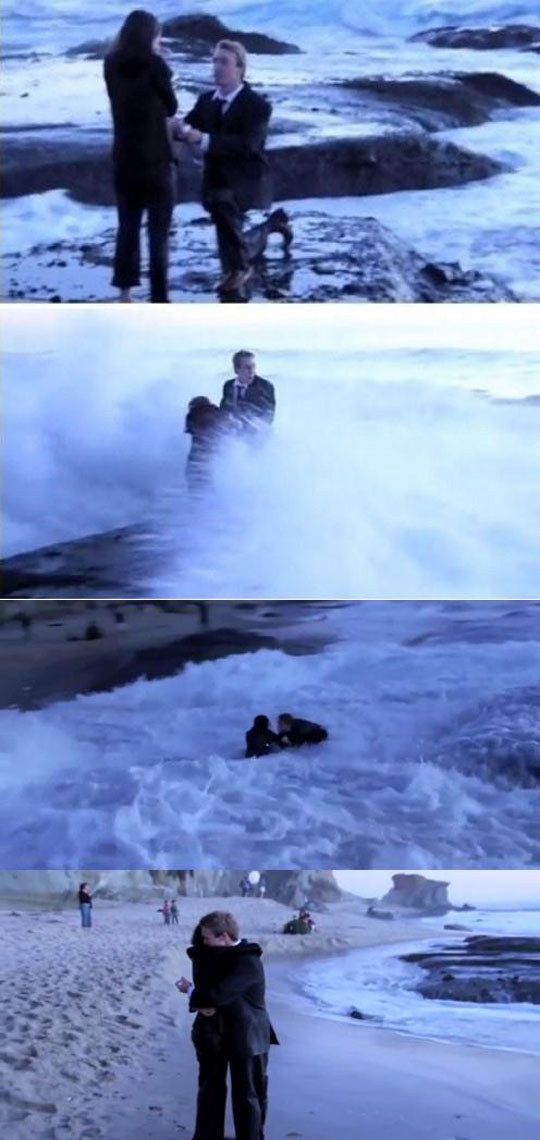 공개된 목숨 건 프러포즈 영상에는 바다에 있는 큰 바위 위에서 여자친구에게 프러포즈를 하는 한 남자의 모습이 담겨 있다. 곧이어 무릎을 꿇은 남자가 여자에게 "나와 결혼해 줄래?" 라고 말하는 순간 갑자기 파도가 일어나 두 사람을 덮쳤다.