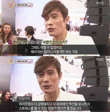 15일 오후 방송된 MBC '섹션TV 연예통신'에서는 영화 '지.아이.조2' 레드카펫 행사에 참석한 배우 이병헌과의 인터뷰가 전파를 탔다.