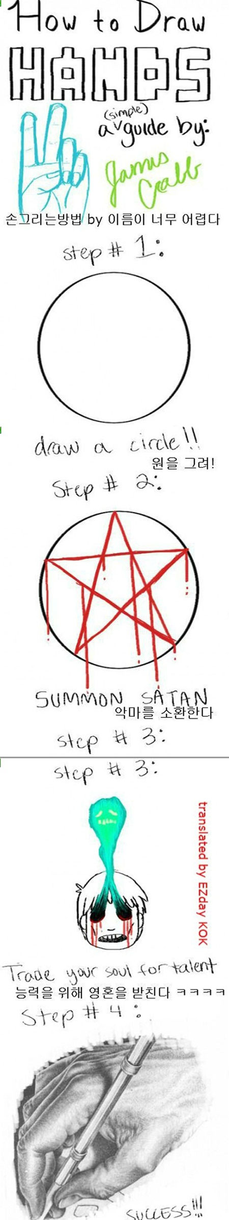 그러고 나서 악마를 소환해 영혼을 바치면 작가처럼 손을 그릴 수 있다고 설명하고 있어 보는 이들의 웃음을 자아낸다.