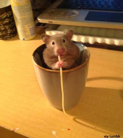 최근 해외 온라인 커뮤니티에 '눈칫밥 먹는 햄스터'라는 제목으로 사진 한 장이 올라왔다. 사진 속 햄스터는 컵에 쏙 들어간 채 주인을 바라보고 있다.