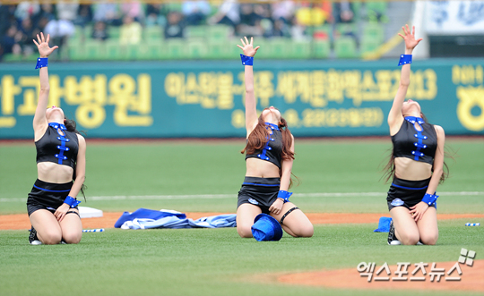 [엑스포츠뉴스=대구, 권혁재 기자] 30일 오후 대구시민운동장 야구장에서 열린 '2013 한국야쿠르트 세븐프로야구' 삼성 라이온즈와 두산 베어스의 개막전 경기에서 삼성 치어리더들이 화려한 오프닝 공연을 펼치고 있다.