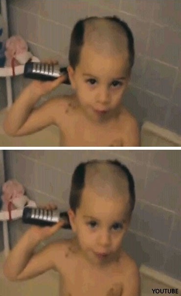 공개된 영상 속에는 이발기를 이용해 자신의 머리카락을 깎고 있는 한 아이의 모습이 담겨 있다. 특히 머리의 가운데 부분만 밀어버리며 웃음을 자아내고 있다.
