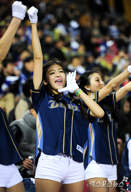 [엑스포츠뉴스=잠실, 권혁재 기자] 9일 오후 잠실야구장에서 열린 '2013 한국야쿠르트 세븐 프로야구' LG 트윈스와 NC 다이노스의 경기에서 NC 치어리더 김연정이 열띤 응원을 펼치고 있다.