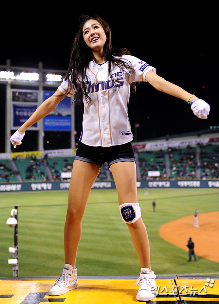 [엑스포츠뉴스=잠실, 권혁재 기자] 10일 오후 잠실야구장에서 열린 '2013 한국야쿠르트 세븐 프로야구' LG 트윈스와 NC 다이노스의 경기에서 NC 치어리더 김연정이 섹시한 안무를 펼치고 있다.