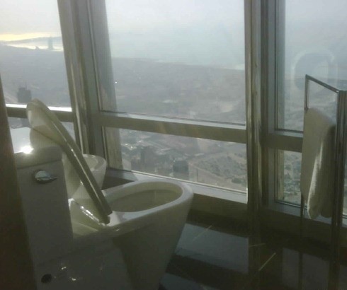 공개된 사진에는 세계에서 가장 높은 빌딩으로 두바이에 있는 '부르즈 할리파'에 있는 화장실의 모습이 담겨 있다. 특히 벽면이 유리로 돼 있어 전망을 훤히 감상할 수 있지만 한편으로는 아찔함마저 자아내고 있다.