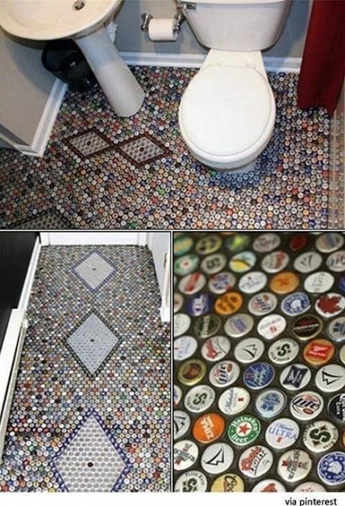 공개한 사진 속에는 알록달록한 타일로 만들어진 욕실 바닥의 모습이 담겨 있다. 하지만 자세히 보면 타일의 정체는 각양각색의 맥주 뚜껑으로 만들어져 있다.