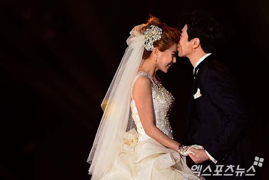 이윤미-주영훈 부부 '이마 키스에 관객들 환호'[포토]