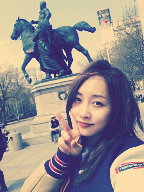 니콜은 "바람과의 싸움에서 얻은 사진. 난 이제 자야지"라는 글과 사진을 공개했다. 사진 속 니콜은 동상 앞에서 손가락으로 '브이'를 만드는 포즈를 취했다. 바람에 휘날리는 머리가 청순해 보인다.