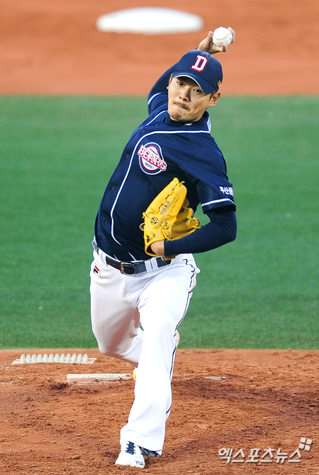 [엑스포츠뉴스=목동, 권혁재 기자] 24일 오후 목동야구장에서 열린 '2013 한국야쿠르트 세븐 프로야구' 넥센 히어로즈와 두산 베어스의 경기에서 두산 선발투수 노경은이 힘차게 공을 던지고 있다.