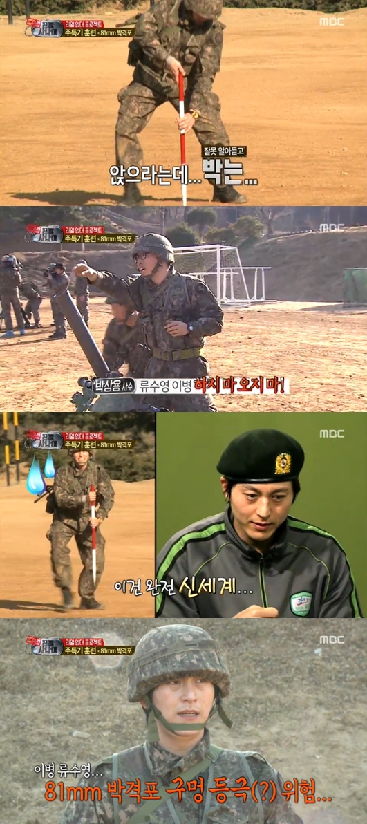 28일 방송된 MBC '일밤-진짜 사나이'에서는 81mm 박격포 주특기 훈련이 시작됐다. 고난이도로 알려진 박격포에 당첨된 멤버는 류수영과 엠블랙 미르.