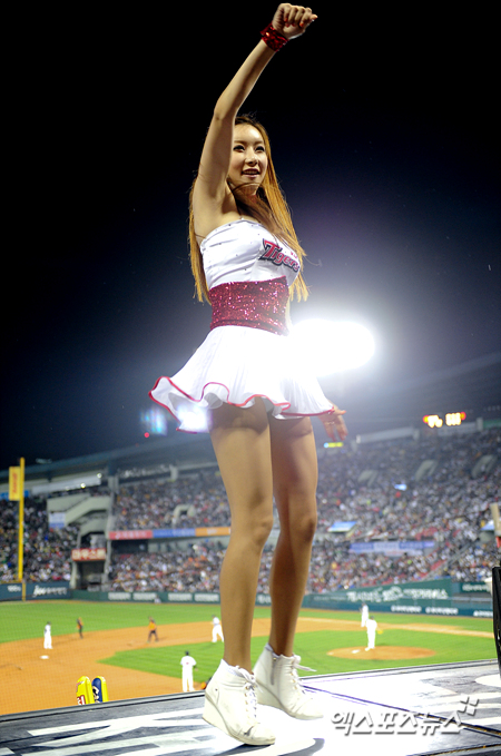 [엑스포츠뉴스=잠실, 권혁재 기자] 30일 오후 서울 잠실야구장에서 열린 '2013 한국야쿠르트 세븐 프로야구' 두산 베어스와 KIA 타이거즈의 경기에서 KIA 치어리더 이주연이 섹시한 안무를 선보이고 있다.