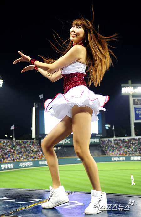 [엑스포츠뉴스=잠실, 권혁재 기자] 30일 오후 서울 잠실야구장에서 열린 '2013 한국야쿠르트 세븐 프로야구' 두산 베어스와 KIA 타이거즈의 경기에서 KIA 치어리더 박정아가 섹시한 안무를 선보이고 있다.