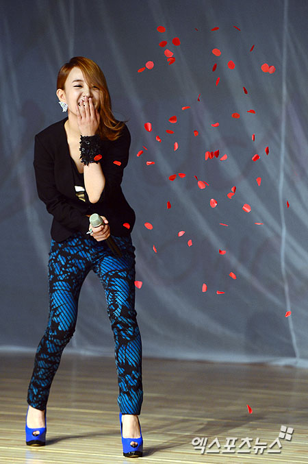 [엑스포츠뉴스 = 권태완 기자] 2일 오후 서울 청담동 일지아트홀에서 열린 윤하 2집 미니앨범 '저스트 리슨(Just Listen)' 쇼케이스에 윤하가 입장할 때 색종이 세례에 웃고 있다.