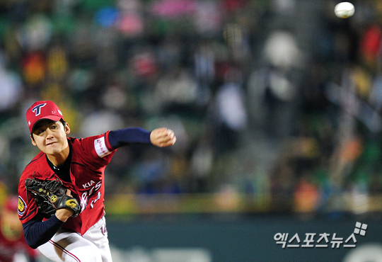 [엑스포츠뉴스=잠실, 권혁재 기자] 2일 오후 잠실야구장에서 열린 '2013 한국야쿠르트 세븐 프로야구' 두산 베어스와 KIA 타이거즈의 경기 두산이 5-4로 앞선 7회 마운드에 오른 KIA 진해수가 힘차게 공을 던지고 있다.