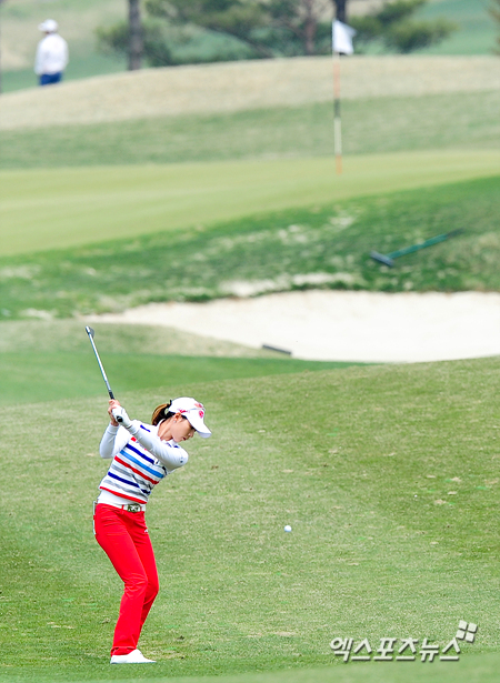 [엑스포츠뉴스=안성, 권혁재 기자] 3일 오전 경기도 안성에 위치한 메이스트로 C.C(18홀/6,417야드)에서 열린 `KG·이데일리 레이디스 오픈` 1라운드 김자영(LG, 22)이 8홀 세컨샷을 하고 있다.