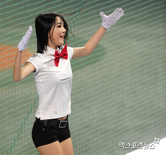 [엑스포츠뉴스=목동, 권혁재 기자] 3일 오후 목동야구장에서 열린 '2013 한국야쿠르트 세븐 프로야구' 넥센 히어로즈와 KIA 타이거즈의 경기에서 넥센 치어리더가 섹시한 안무를 선보이고 있다.