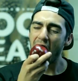 이 영상은 "우리는 평생 사과를 잘못 먹었다"라며 비장하게 소개를 하면서, 이후 등장한 한 남성이 맛있게 생긴 사과를 먹기 시작한다.