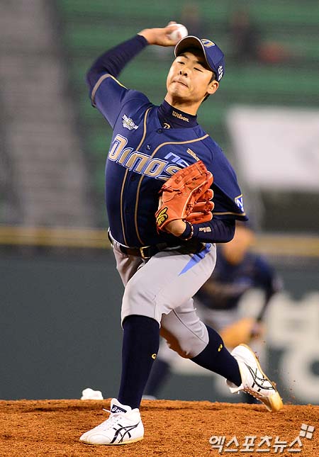 [엑스포츠뉴스 = 잠실, 김성진 기자] 10일 오후 서울 송파구 잠실동 잠실야구장에서 열린 '2013 한국야쿠르트 세븐 프로야구' 두산 베어스와 NC 다이노스의 경기에 NC 세 번째 투수 이성민이 역투를 펼치고 있다.