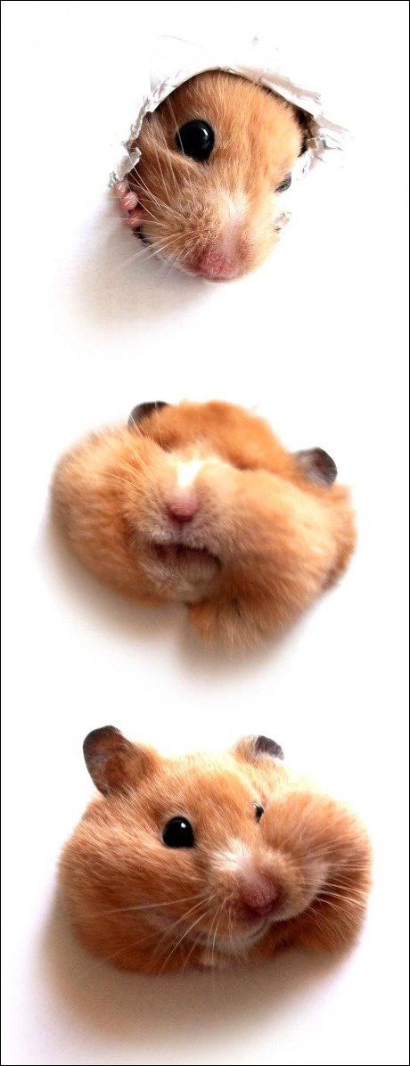 사진 속 햄스터는 종이를 뚫고 탈출하려 애쓰는 모습이다. 포동포동한 햄스터가 힘겹게 종이를 뚫고 나오는 모습이 웃음을 자아낸다.