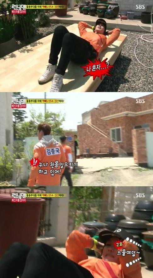 이날 엄정화는 개리, 김종국과 함께 형사 팀을 이뤄 범인 팀을 쫓기 시작했다. 이들은 첫 번째 지령으로 '택배요원과 접선하라'는 미션을 받았다.