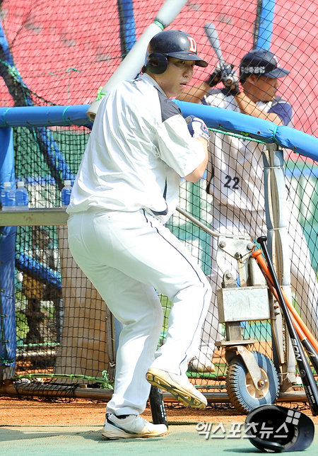 [엑스포츠뉴스=권혁재 기자] 23일 오후 잠실야구장에서 열린 '2013 한국야쿠르트 세븐 프로야구' 두산 베어스와 넥센 히어로즈의 경기 경기에 앞서 두산 김현수가 타격 훈련을 하고 있다.
