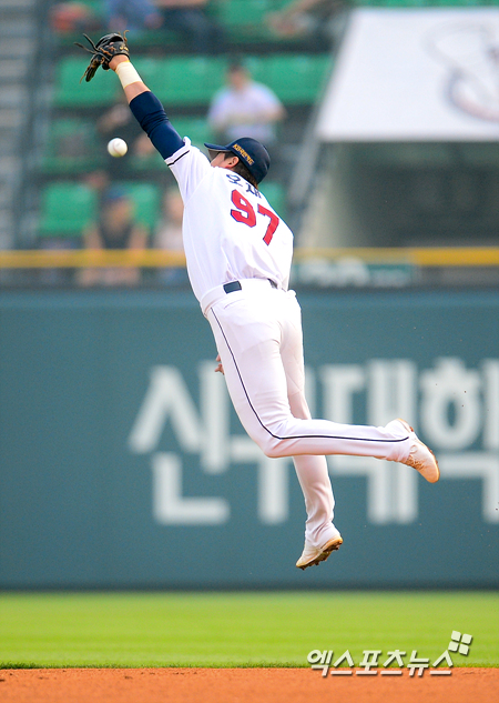 오재원 '힘차게 날아올라봤지만~'[포토]