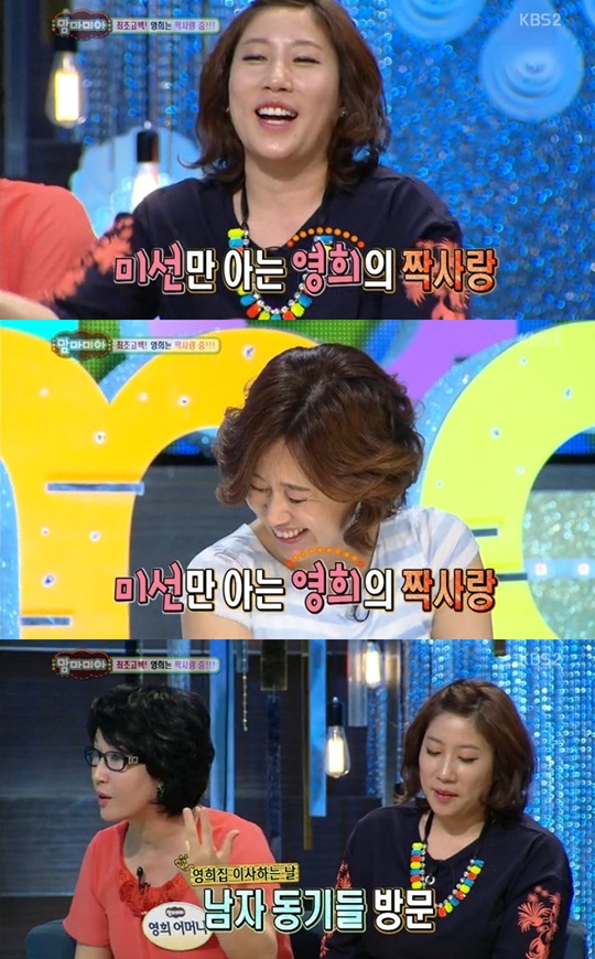 이에 김영희 어머니는 "영희가 이사하는 날 남자 동기 다섯 명이 왔다. 나는 그때까지 몰랐다"며 "나는 영희가 좋아하는 사람에게 그런 스타일이 싫다고 말했다. '난 듬직한 스타일 좋아하고, 너는 너무 무거워서 싫다'고 말했다"라고 설명했다.