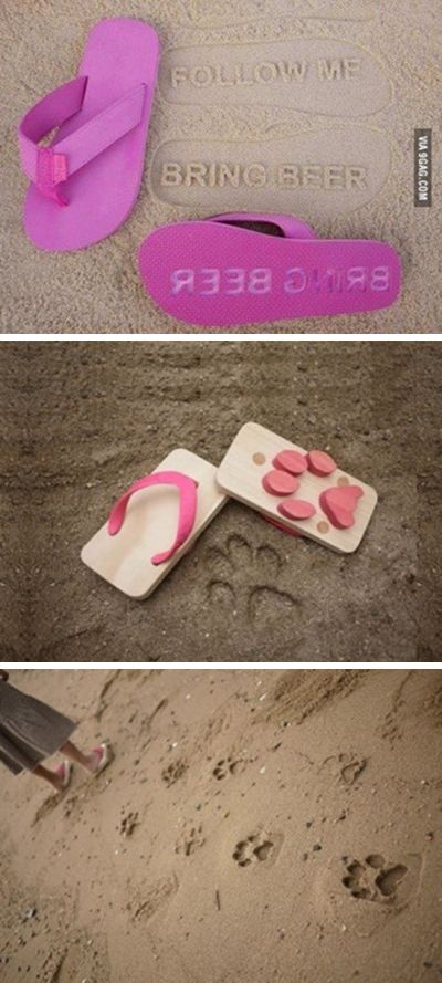 한 슬리퍼에는 'FOLLOW ME'(나를 따라와), 'BRING BEER'(맥주 가져와)라는 글귀가 적혀 있어 이를 해변가에 남겼다.