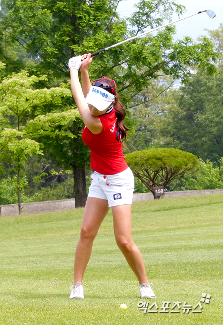 [엑스포츠뉴스=이천, 권혁재 기자] 31일 오전 경기도 이천시 휘닉스스프링스 컨트리클럽(72파/6,496야드)에서 열린 'E1 채리티 오픈(E1 Charity open)' 1라운드 경기, 안신애(23, 우리투자증권)가 7번홀 세컨샷을 하고 있다.