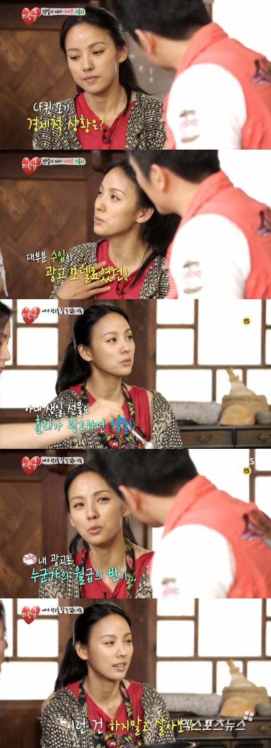 이효리는 31일 방송된 SBS '땡큐'에서 CF 모델을 그만 두게 된 것에 대해 "재정적으로 많이 어렵다. 이전에는 대부분의 수입이 광고 모델료였다"라고 밝혔다.