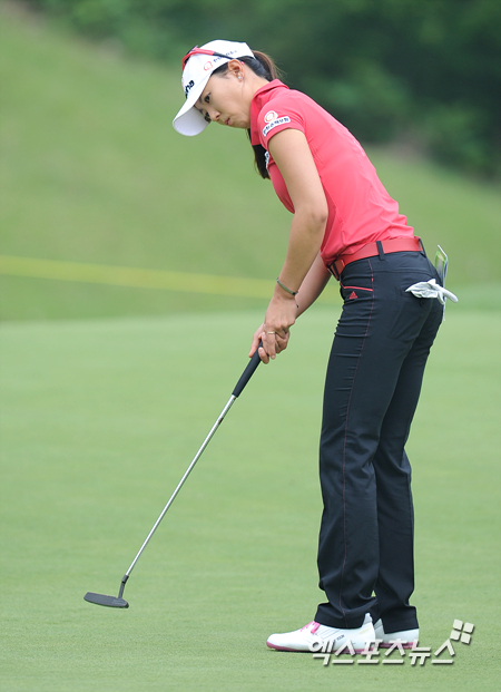 [엑스포츠뉴스=이천, 권혁재 기자] 1일 오전 경기도 이천시 휘닉스스프링스 컨트리클럽(72파/6,496야드)에서 열린 'E1 채리티 오픈(E1 Charity open)' 2라운드 경기, 윤채영(26, 한화)가 11번홀 퍼팅을 하고 있다.